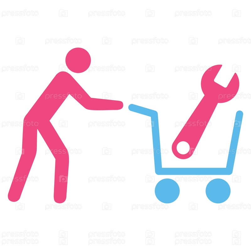 Инструменты, покупок иллюстрации значок. Стиль является биколор плоский символ, розовый и голубой цвета, закругленные углы, белый фон