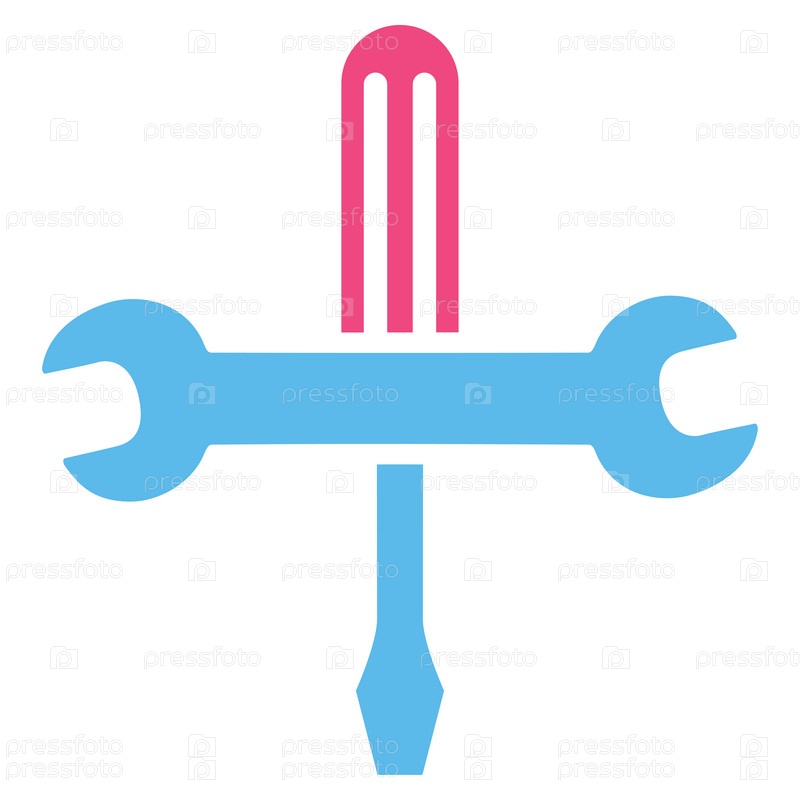 Значок инструменты иллюстрации. Стиль является биколор плоский символ, розовый и голубой цвета, закругленные углы, белый фон
