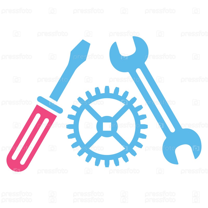 Настройка службы иллюстрации значок. Стиль является биколор плоский символ, розовый и голубой цвета, закругленные углы, белый фон
