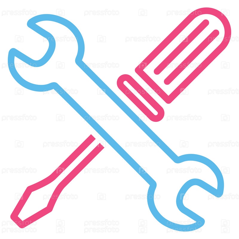 Настройка инструментов иллюстрации значок. Стиль является биколор плоский символ, розовый и голубой цвета, закругленные углы, белый фон