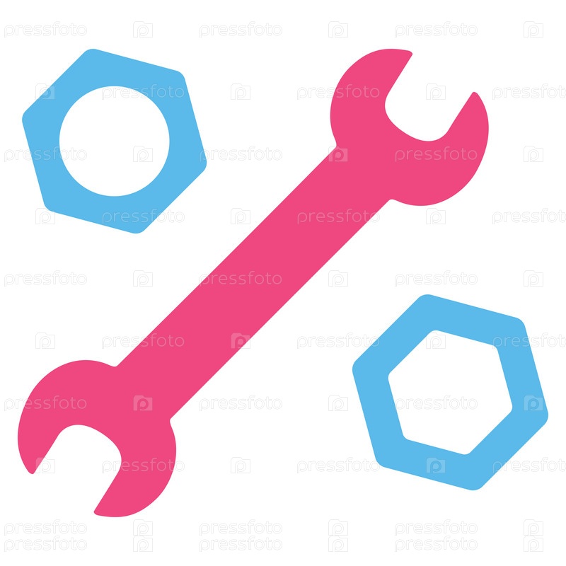 Иллюстрация значок гаечного ключа и орехи. Стиль является биколор плоский символ, розовый и голубой цвета, закругленные углы, белый фон