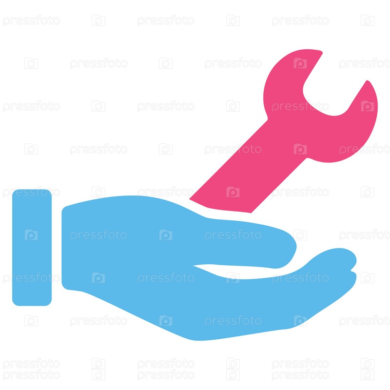 Иллюстрация значок гаечного ключа службы. Стиль является биколор плоский символ, розовый и голубой цвета, закругленные углы, белый фон