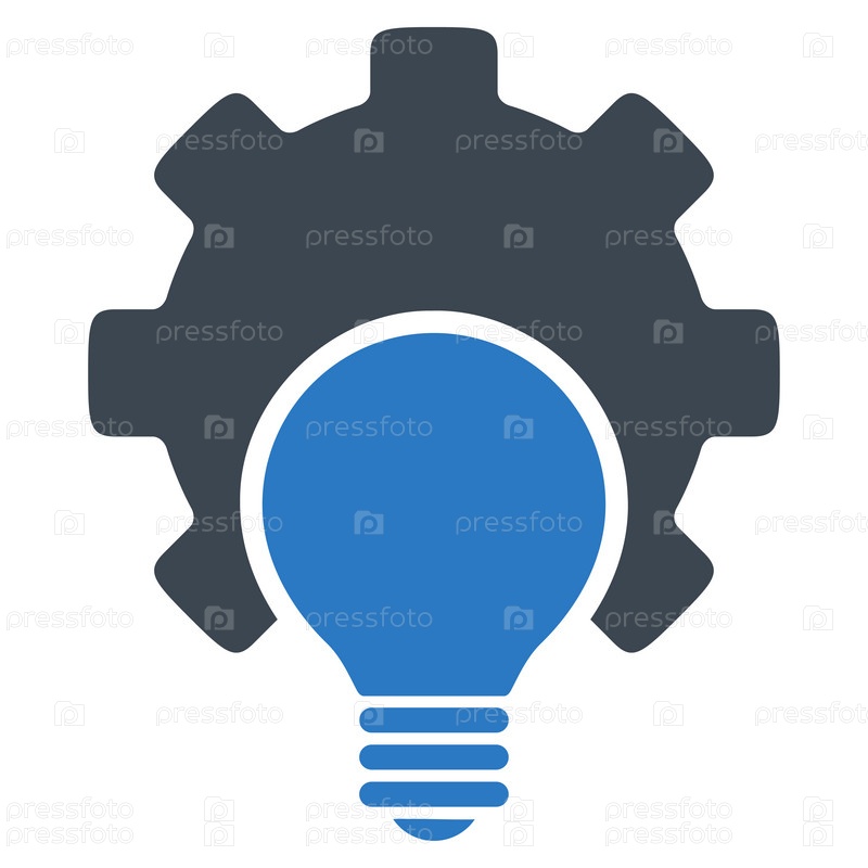 Лампа иллюстрации настройкиЗначок. Стиль-биколор плоский символ, гладкая синего цвета, закругленные углы, белый фон