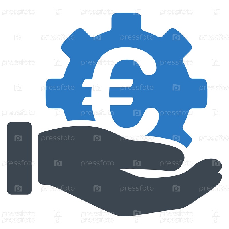 Евро службы развития иллюстрации значок. Стиль-биколор плоский символ, гладкая синего цвета, закругленные углы, белый фон