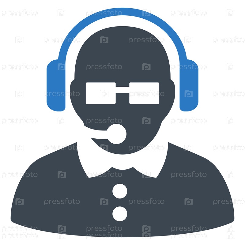 Женщины иллюстрация значок оператора. Стиль-биколор плоский символ, гладкая синего цвета, закругленные углы, белый фон