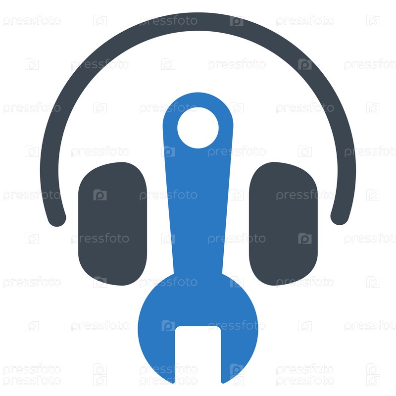 Значок наушников инструментов иллюстрации. Стиль-биколор плоский символ, гладкая синего цвета, закругленные углы, белый фон