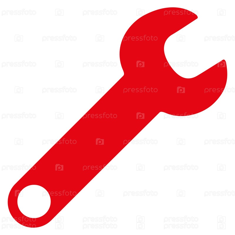 Иллюстрация значок гаечного ключа. Стиль является плоской символ, красный цвет, закругленные углы, белый фон