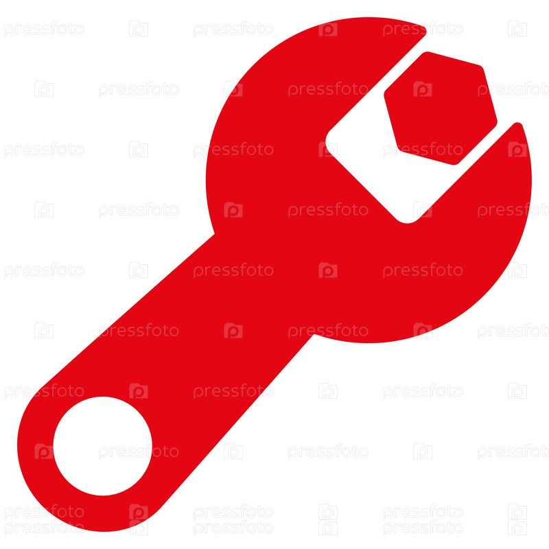 Иллюстрация значок гаечного ключа. Стиль является плоской символ, красный цвет, закругленные углы, белый фон