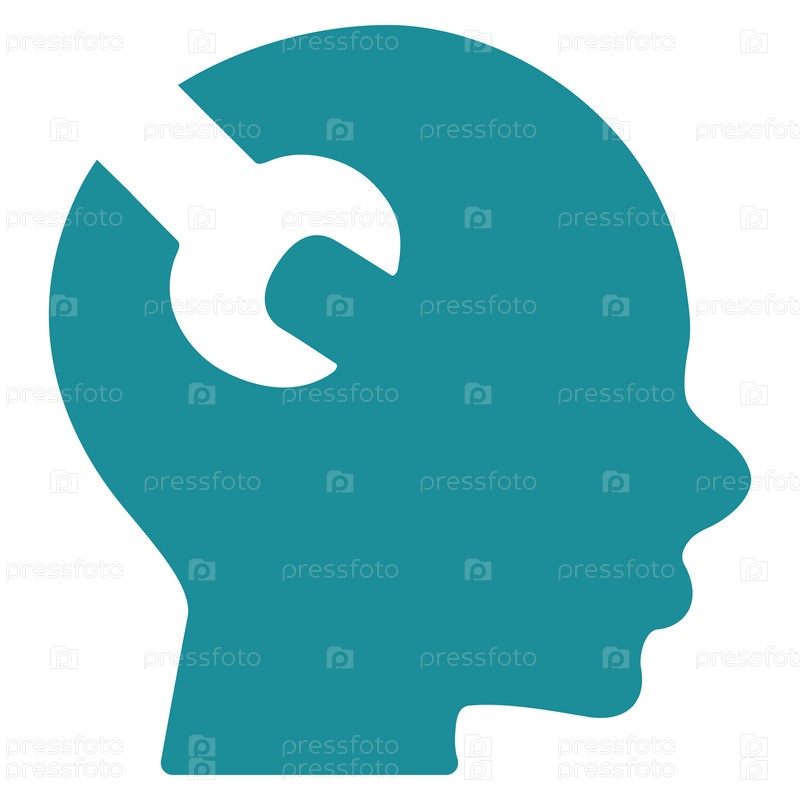 Мозг службы иллюстрации значок. Стиль является плоской символ, мягкий голубой цвет, закругленные углы, белый фон