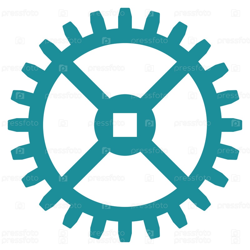 Часы значок шестеренки иллюстрации. Стиль является плоской символ, мягкий голубой цвет, закругленные углы, белый фон