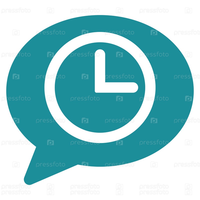Значок сообщения время иллюстрации. Стиль является плоской символ, мягкий голубой цвет, закругленные углы, белый фон