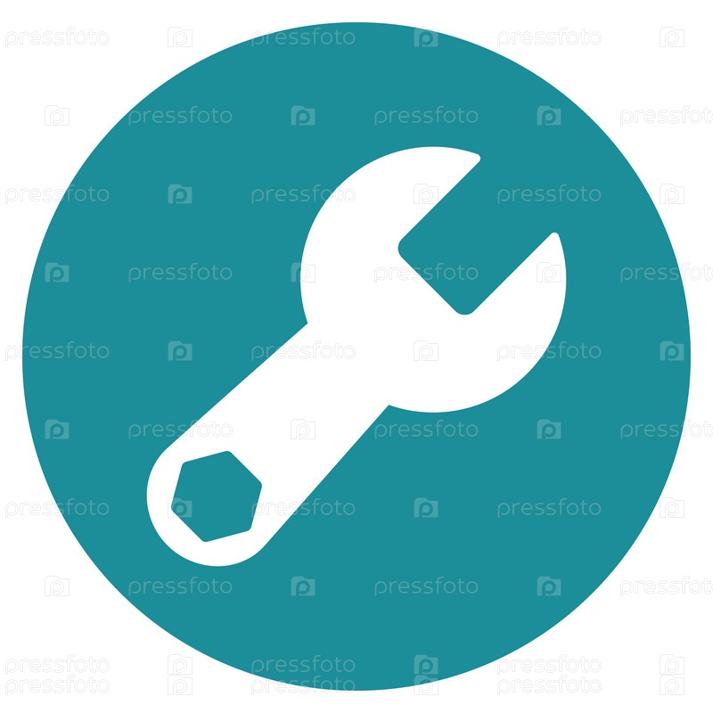 Иллюстрация значок гаечного ключа. Стиль является плоской символ, мягкий голубой цвет, закругленные углы, белый фон