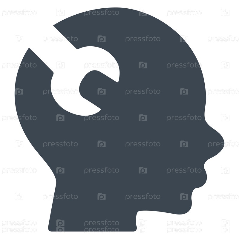 Мозг службы иллюстрации значок. Стиль является плоской символ, гладких серый цвет, закругленные углы, белый фон