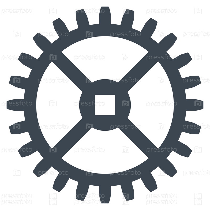 Часы значок шестеренки иллюстрации. Стиль является плоской символ, гладких серый цвет, закругленные углы, белый фон