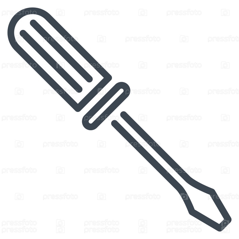 Контур отвертки иллюстрации значок. Стиль является плоской символ, гладких серый цвет, закругленные углы, белый фон