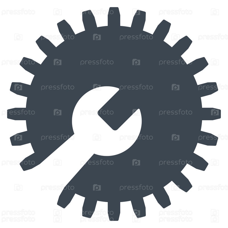 Значок шестеренки инструменты иллюстрации. Стиль является плоской символ, гладких серый цвет, закругленные углы, белый фон