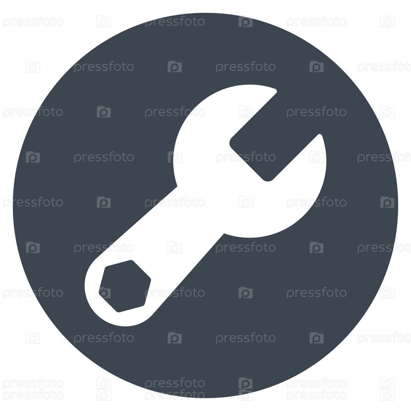 Иллюстрация значок гаечного ключа. Стиль является плоской символ, гладких серый цвет, закругленные углы, белый фон