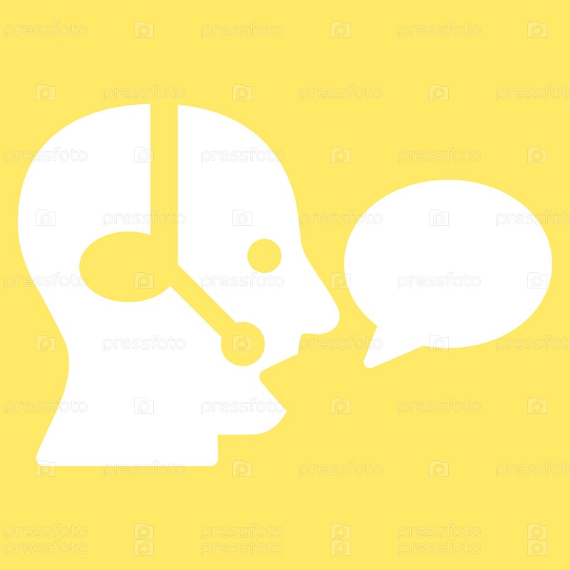 Значок оператора сообщение Иллюстрация. Стиль является плоской символ, белый цвет, закругленные углы, желтый фон