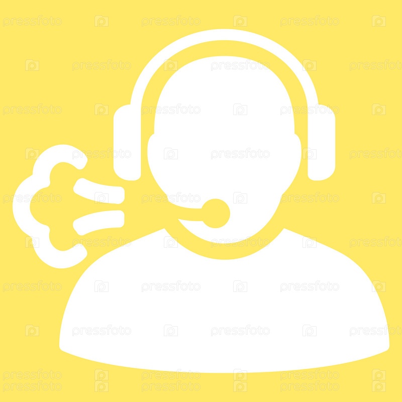 Значок оператора сообщение Иллюстрация. Стиль является плоской символ, белый цвет, закругленные углы, желтый фон