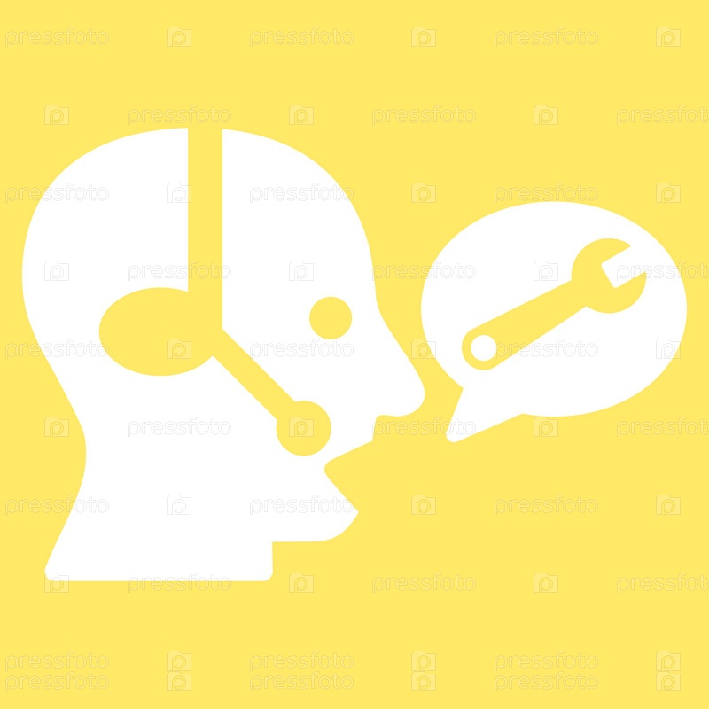 Значок оператора службы сообщение Иллюстрация. Стиль является плоской символ, белый цвет, закругленные углы, желтый фон