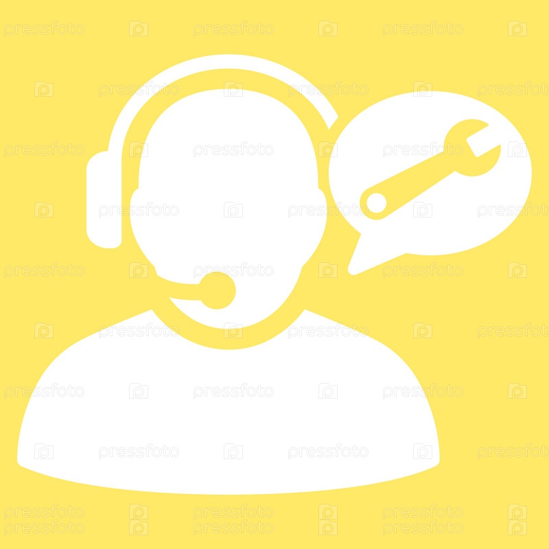 Значок оператора службы сообщение Иллюстрация. Стиль является плоской символ, белый цвет, закругленные углы, желтый фон