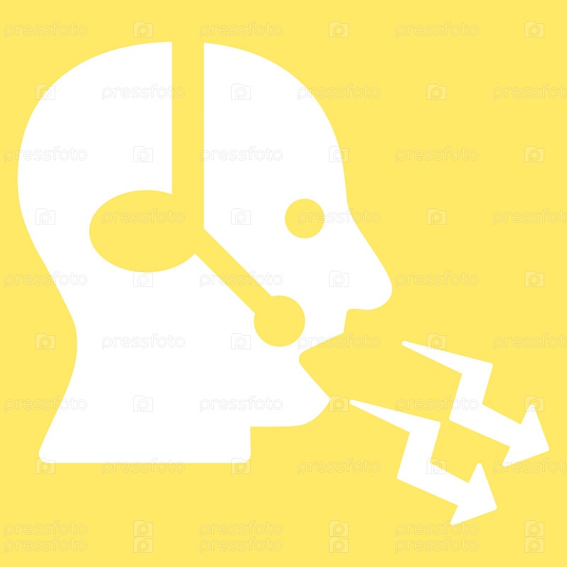 Значок оператора рупор иллюстрации. Стиль является плоской символ, белый цвет, закругленные углы, желтый фон