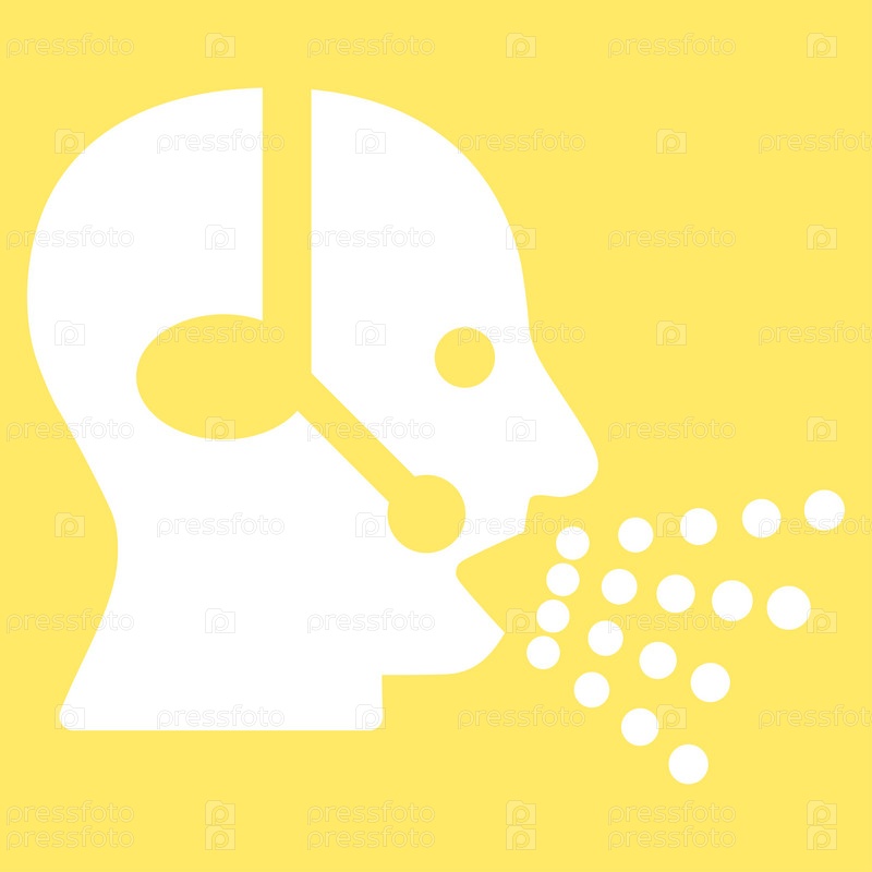 Значок оператора речи иллюстрации. Стиль является плоской символ, белый цвет, закругленные углы, желтый фон