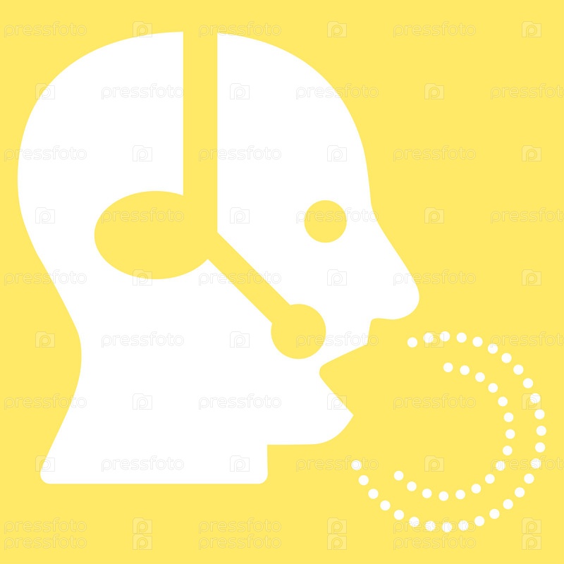 Значок оператора речи иллюстрации. Стиль является плоской символ, белый цвет, закругленные углы, желтый фон