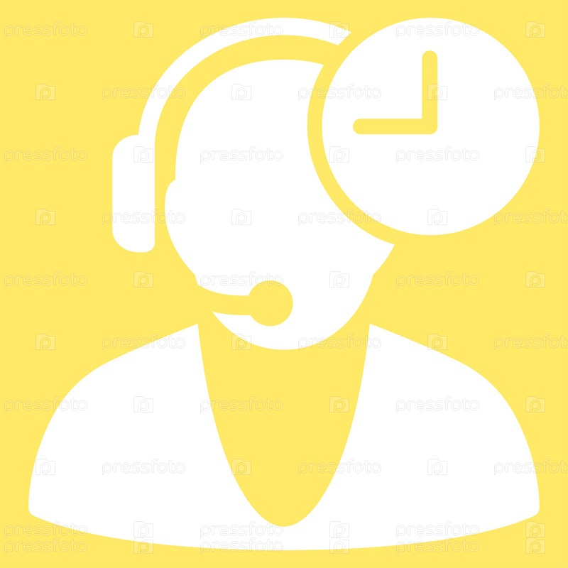 Значок оператора время иллюстрации. Стиль является плоской символ, белый цвет, закругленные углы, желтый фон