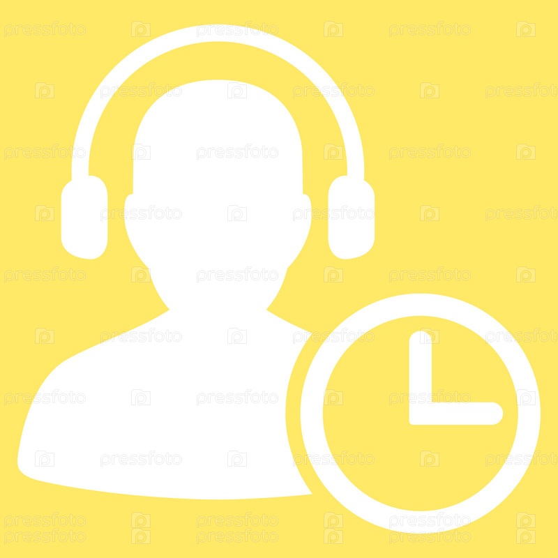 Значок оператора время иллюстрации. Стиль является плоской символ, белый цвет, закругленные углы, желтый фон