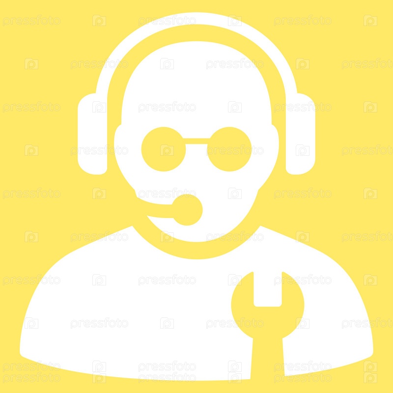 Значок оператора службы иллюстрации. Стиль является плоской символ, белый цвет, закругленные углы, желтый фон