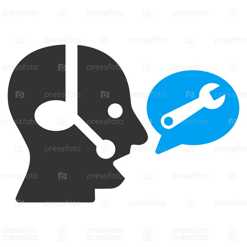 Значок оператора службы сообщение Иллюстрация. Стиль является биколор плоский символ, голубой и серый цвета, закругленные углы, белый фон