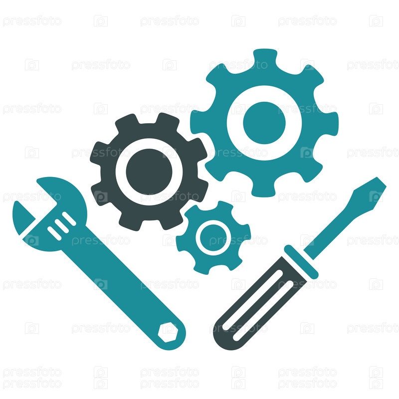 Механика инструменты иллюстрации значок. Стиль-биколор плоский символ, мягкого синего цвета, закругленные углы, белый фон