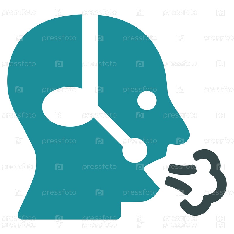 Значок оператора речи иллюстрации. Стиль-биколор плоский символ, мягкого синего цвета, закругленные углы, белый фон