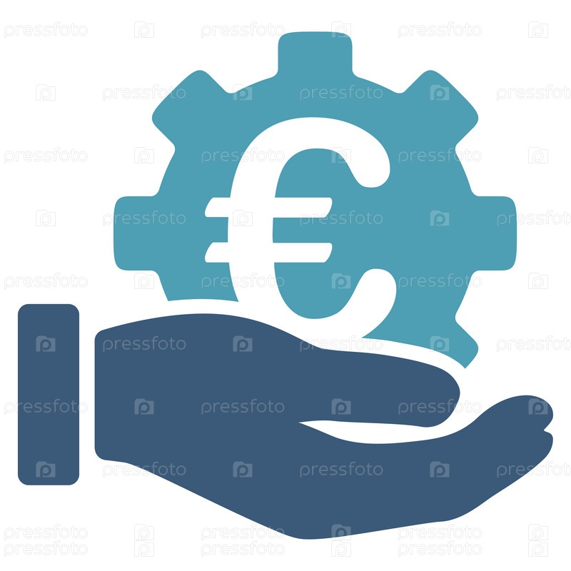 Евро службы развития иллюстрации значок. Стиль является биколор плоский символ, голубой и синий цвета, закругленные углы, белый фон