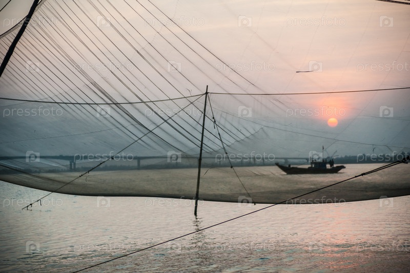 Рыболовная сеть на закате