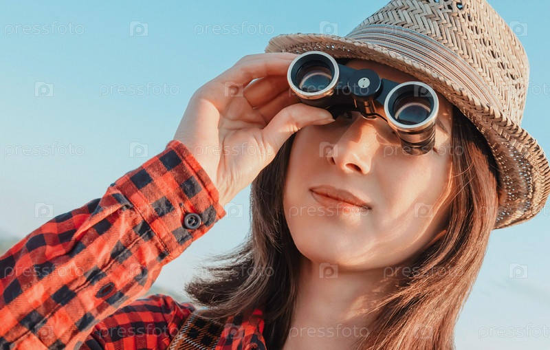 Девушка смотрит в бинокль