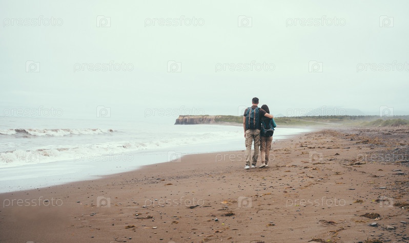 Влюбленная пара на берегу моря