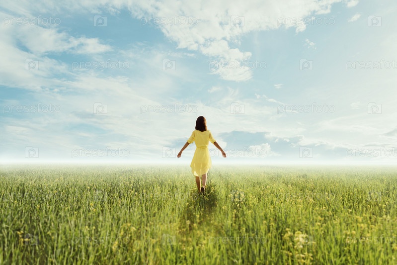 Молодая женщина на летнем лугу