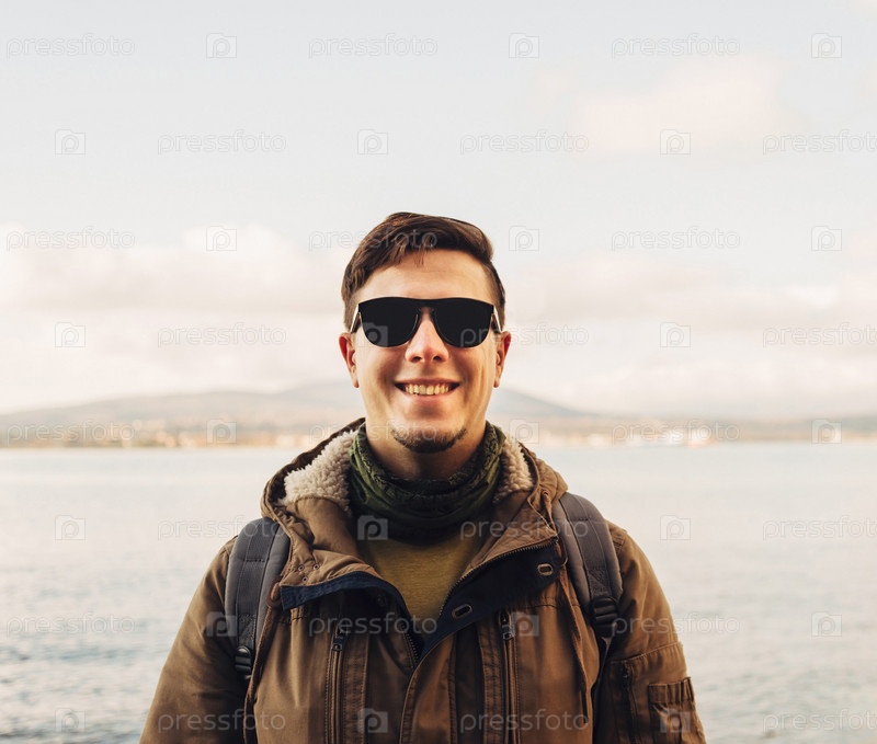 Улыбающийся красивый человек на побережье