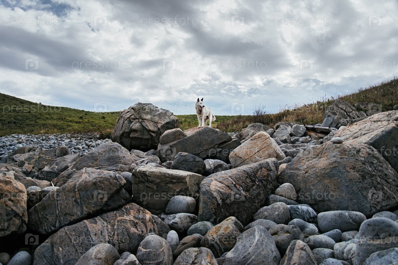 Собака на камнях