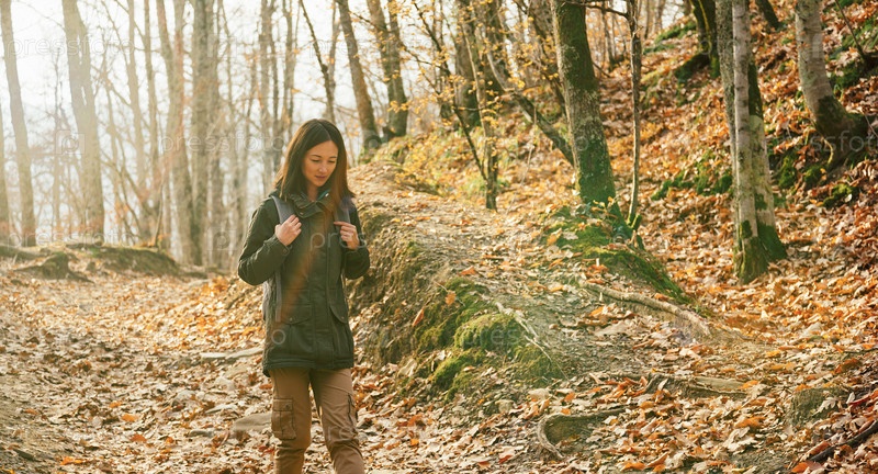 Турист в осеннем лесу
