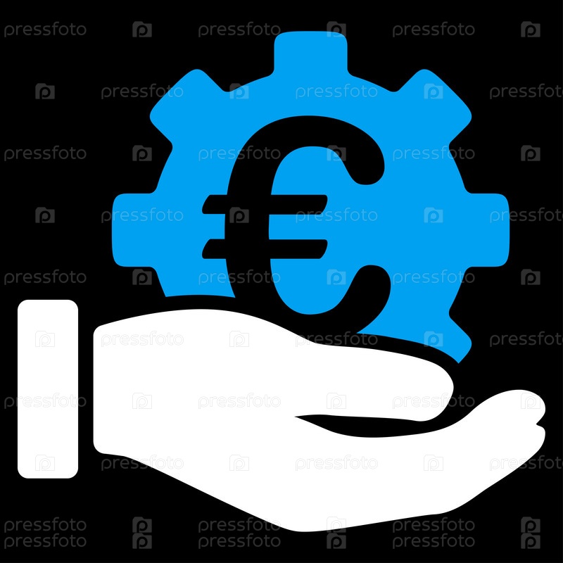 Евро службы развития растровых значок. Стиль является биколор плоский символ, синий и белый цвета, закругленные углы, черный фон