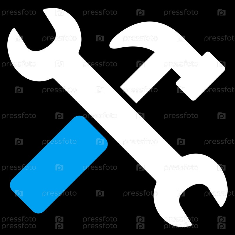 Молоток и растровых инструментов. Стиль является биколор плоский символ, синий и белый цвета, закругленные углы, черный фон