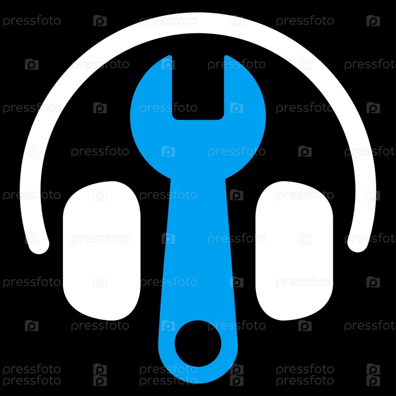 Гарнитура параметры растровых значок. Стиль является биколор плоский символ, синий и белый цвета, закругленные углы, черный фон