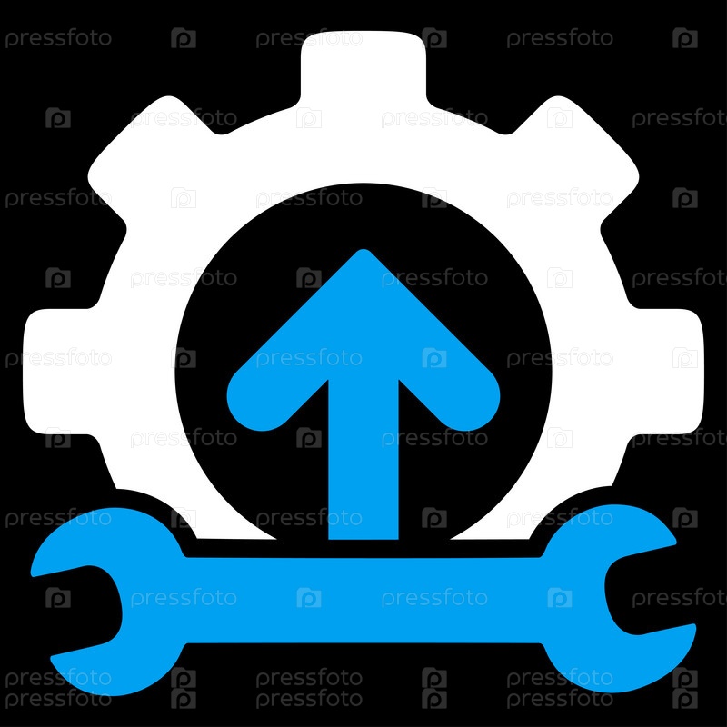 Значок растровых инструментов интеграции. Стиль является биколор плоский символ, синий и белый цвета, закругленные углы, черный фон