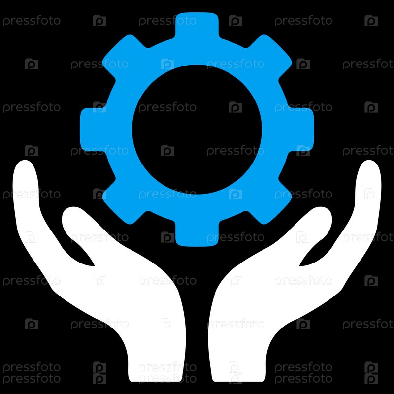 Значок растровое обслуживания. Стиль является биколор плоский символ, синий и белый цвета, закругленные углы, черный фон