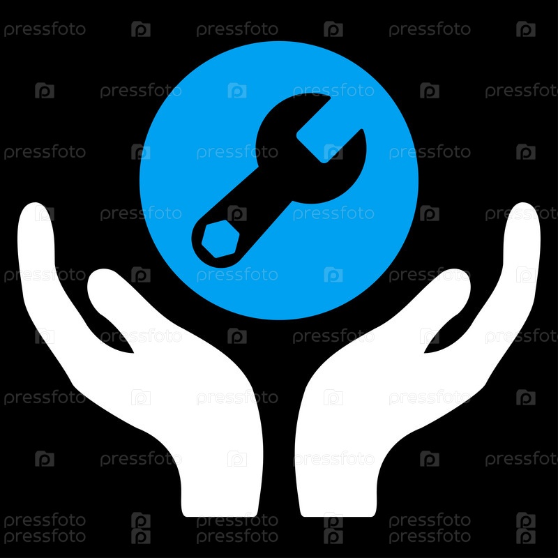 Значок растровое обслуживания. Стиль является биколор плоский символ, синий и белый цвета, закругленные углы, черный фон