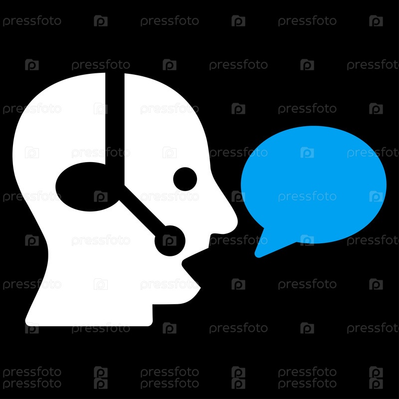 Значок оператора сообщение растров. Стиль является биколор плоский символ, синий и белый цвета, закругленные углы, черный фон