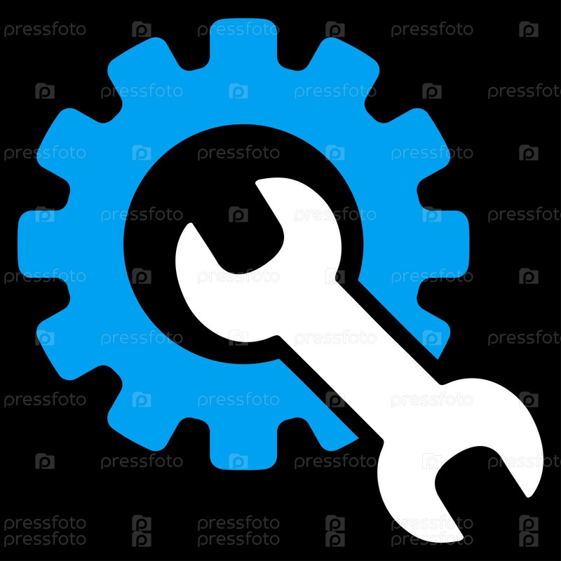 Инструменты для обслуживания растровых значок. Стиль является биколор плоский символ, синий и белый цвета, закругленные углы, черный фон